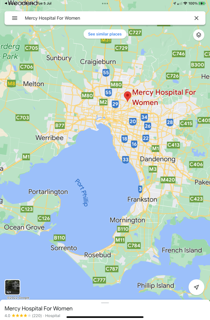 I was born at the Mercy Women’s Hospital, East Melbourne.