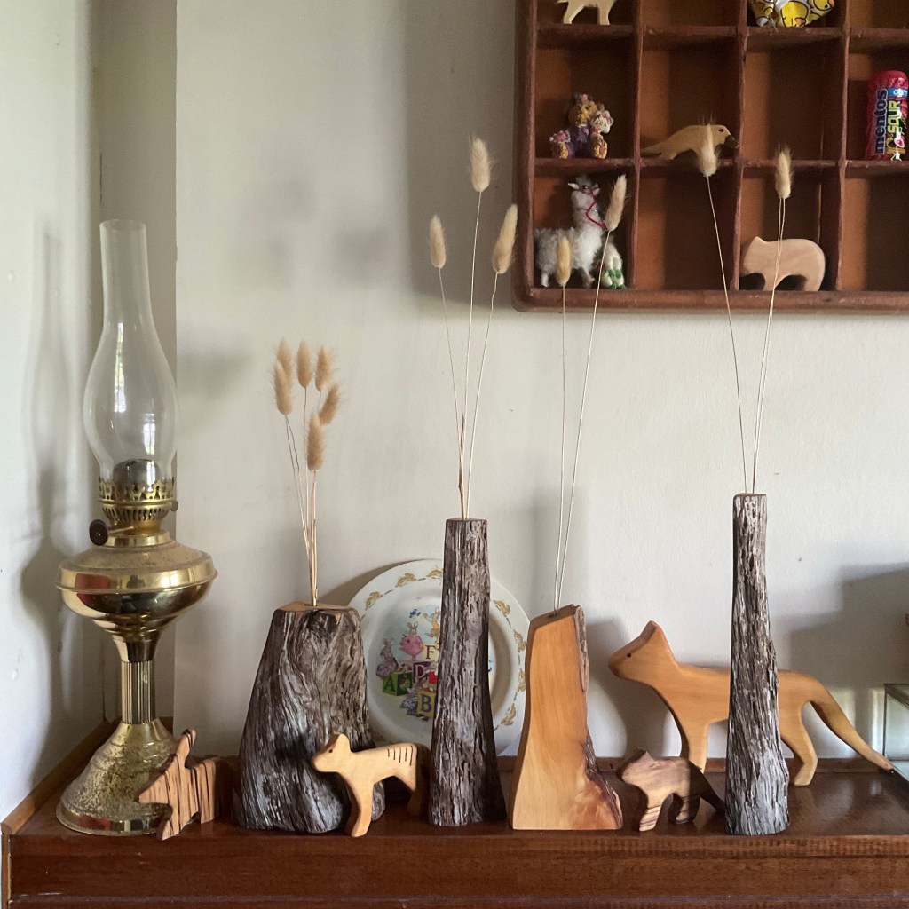 - Wooden vases or centrepieces