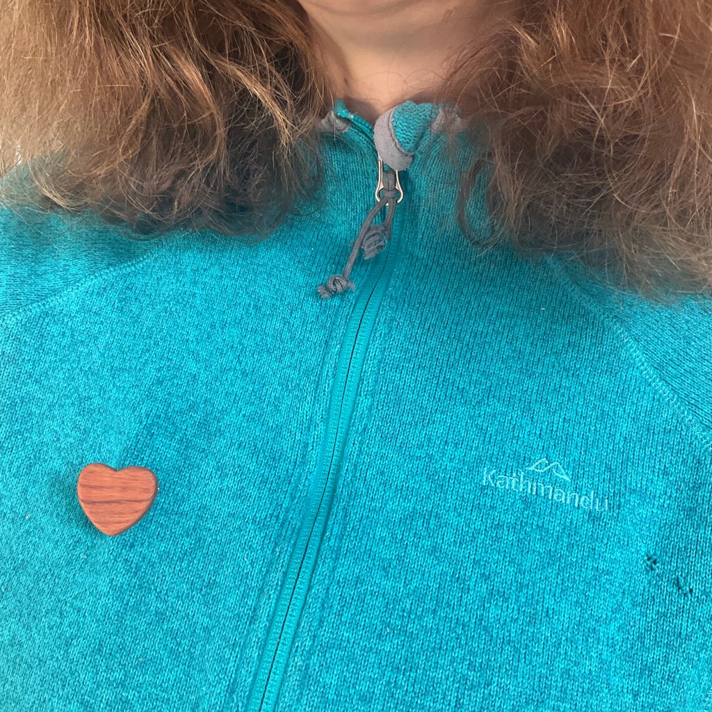 Wood heart brooch, fridge magnet, keyring and keepsake. Made with Tasmanian Huon Pine and Kingbilly Pine.